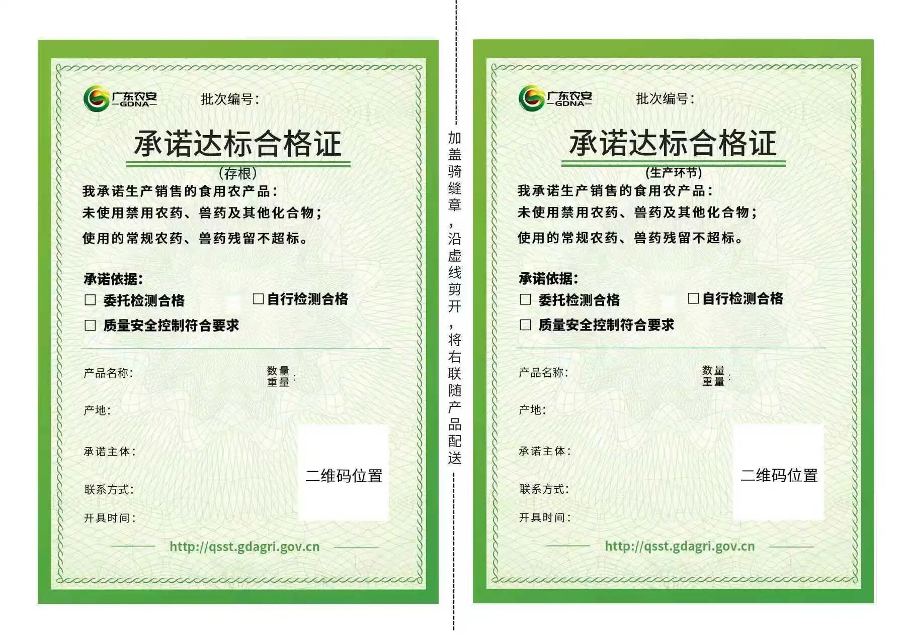 作为农产品产销大省,广东省第一时间响应新规,在广东省农产品质量安全智慧监管平台完成新版合格证样式更新,同步调整了预印版电子合格证扫码后的展示内容,黄色网址视频_涩涩为省内生产经营主体搭建了合规开具的官方渠道。调整后的新版合格证样式如下: