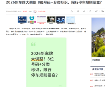 同时该文章还杜撰了不少内容,比如:“首批试点城市包括北京、上海、广州、深圳、杭州等5个汽车保有量大、智慧交通基础好的城市,从2026年1月1日起正式启用新款车牌;2026年7月1日后,在全国范围内全面推行。”